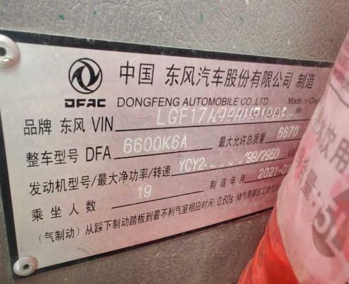 | 客车品牌 | 东风客车 | 上牌时间 | 2021-03-19 |