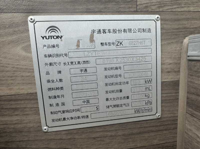 | 客车品牌 | 宇通客车 | 上牌时间 | 2022-01-08 |