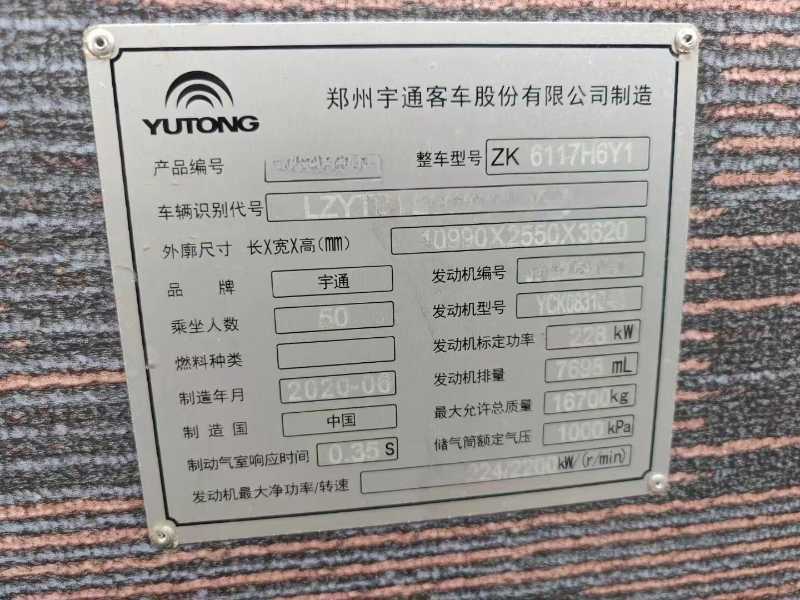 | 客车品牌 | 宇通客车 | 上牌时间 | 2020-07-21 |