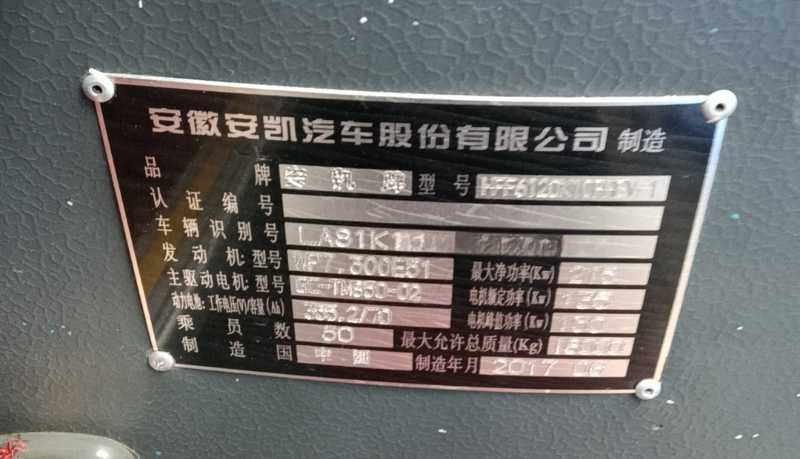 | 客车品牌 | 安凯客车 | 上牌时间 | 2017-06-22 |