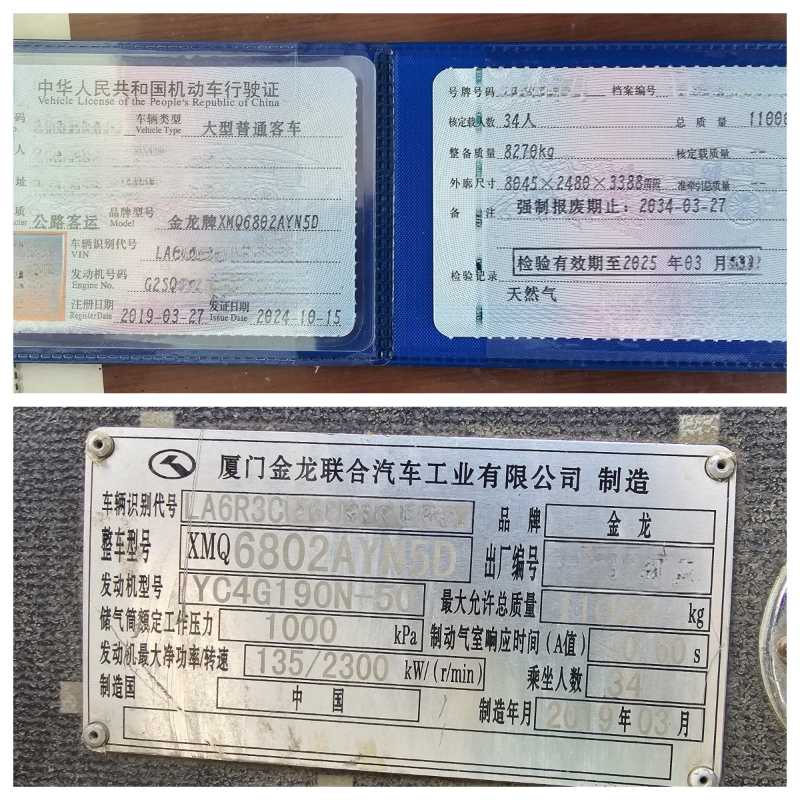 | 客车品牌 | 金龙客车 | 上牌时间 | 2019-03-13 |