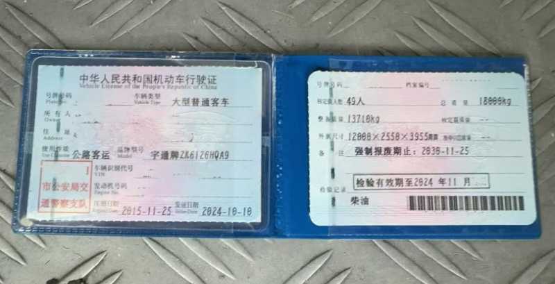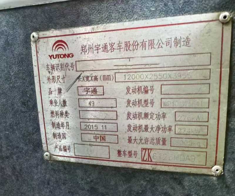 | 客车品牌 | 宇通客车 | 上牌时间 | 2015-11-18 |