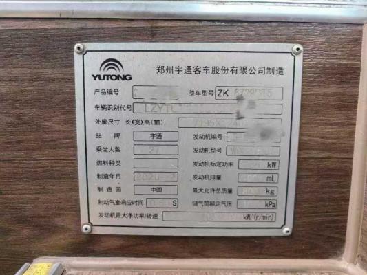 | 客车品牌 | 宇通客车 | 上牌时间 | 2020-12-16 |