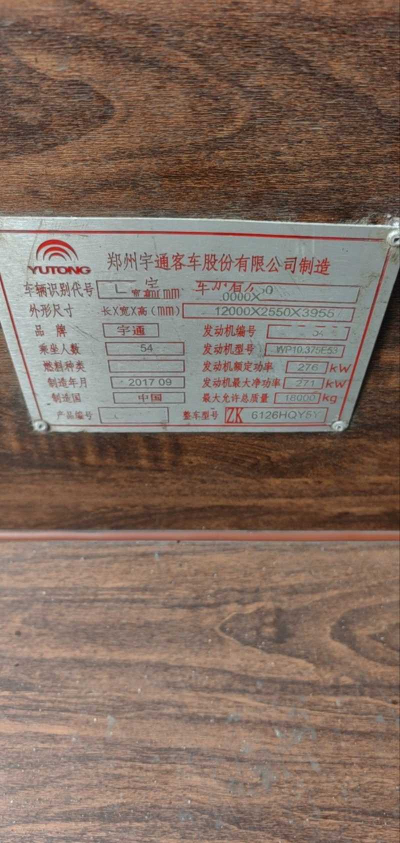 | 客车品牌 | 宇通客车 | 上牌时间 | 2017-10-25 |