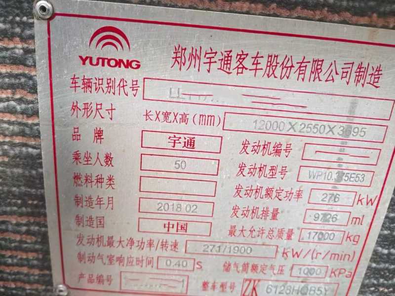 | 客车品牌 | 宇通客车 | 上牌时间 | 2018-02-13 |