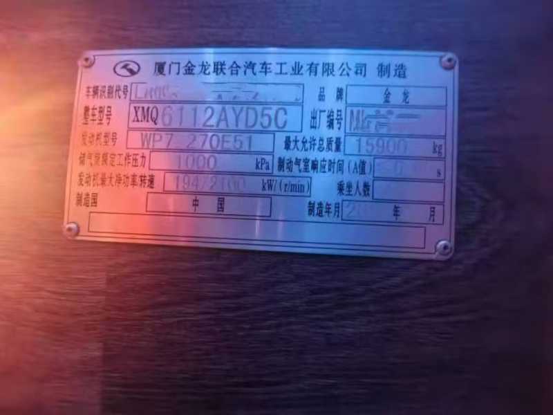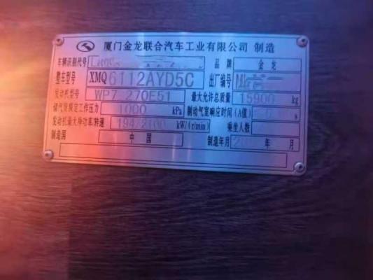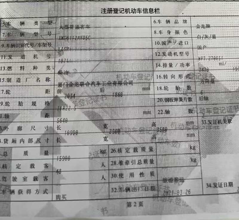 | 客车品牌 | 南京金龙 | 上牌时间 | 2021-04-20 |