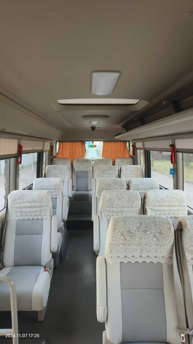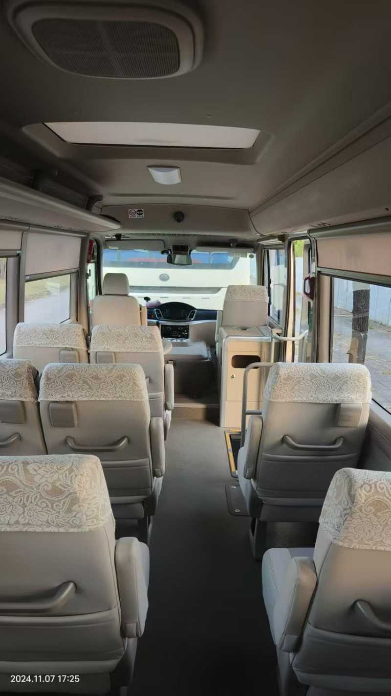 国六17座宇通T7旅游车,2021年11月上牌宇通T7,新车46万多,前置独立悬挂,缓速器,RA428Q163E61发动机,高铁窗帘,手工定制保时捷同款皮面座椅,有办公桌,饮水机,伞架,行李架,公里数少,外观内饰嘎嘎新,车好价高,同款还有20座。