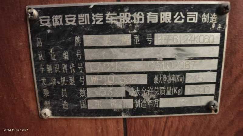 | 客车品牌 | 安凯客车 | 上牌时间 | 2013-02-12 |
