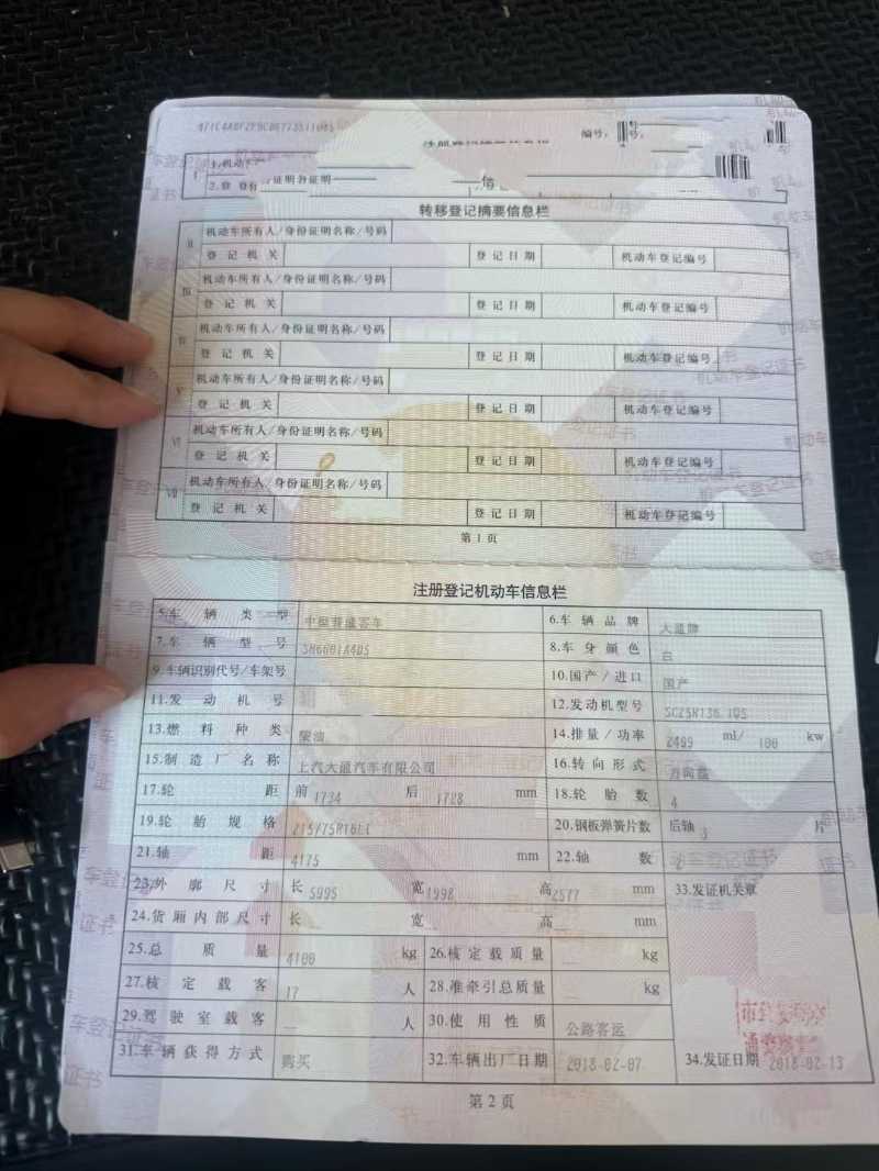 | 客车品牌 | 上汽大通 | 上牌时间 | 2018-02-13 |