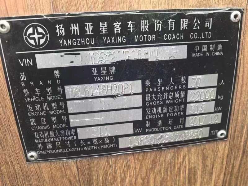 | 客车品牌 | 亚星客车 | 上牌时间 | 2017-12-20 |