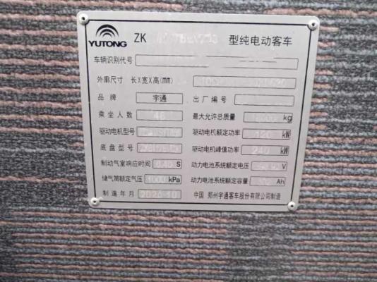 | 客车品牌 | 宇通客车 | 上牌时间 | 2020-11-18 |