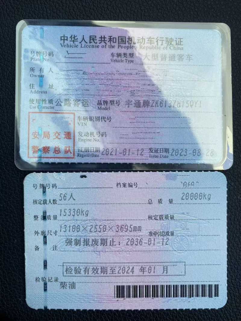 | 客车品牌 | 宇通客车 | 上牌时间 | 2021-01-12 |