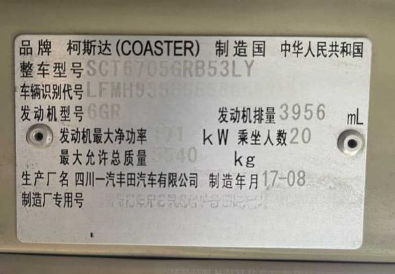 2017年11月 20座4.0排量丰田考斯特旅游车