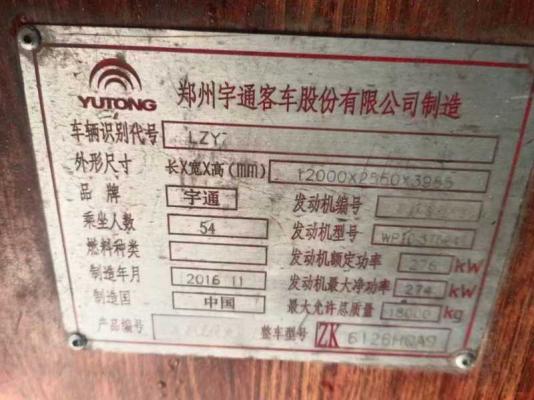 | 客车品牌 | 宇通客车 | 上牌时间 | 2016-12-21 |