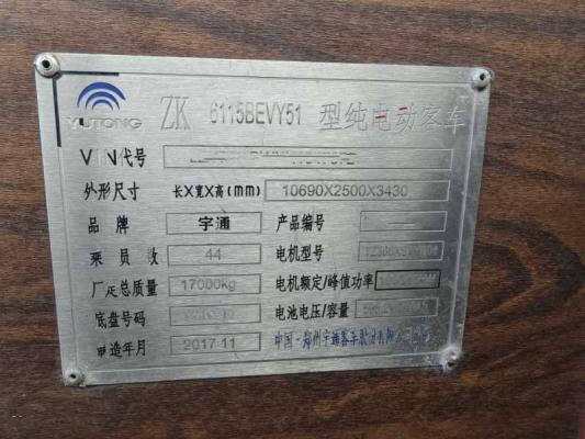 2017年12月 多台44座有暖气宁德时代宇通6115电车