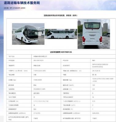 来台有公告国六12米34座2+1宇通6120型客车