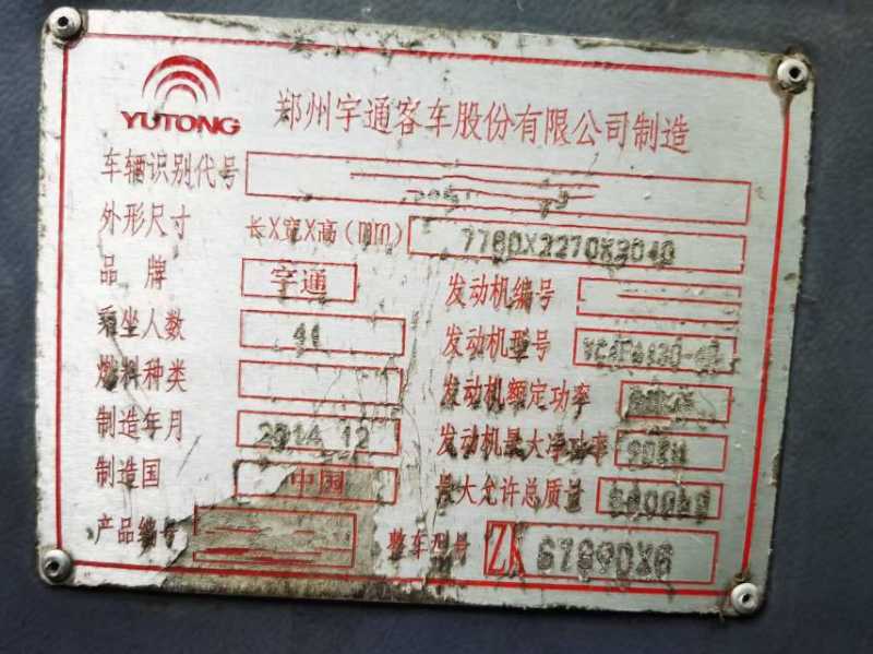 | 客车品牌 | 宇通客车 | 上牌时间 | 2014-12-29 |