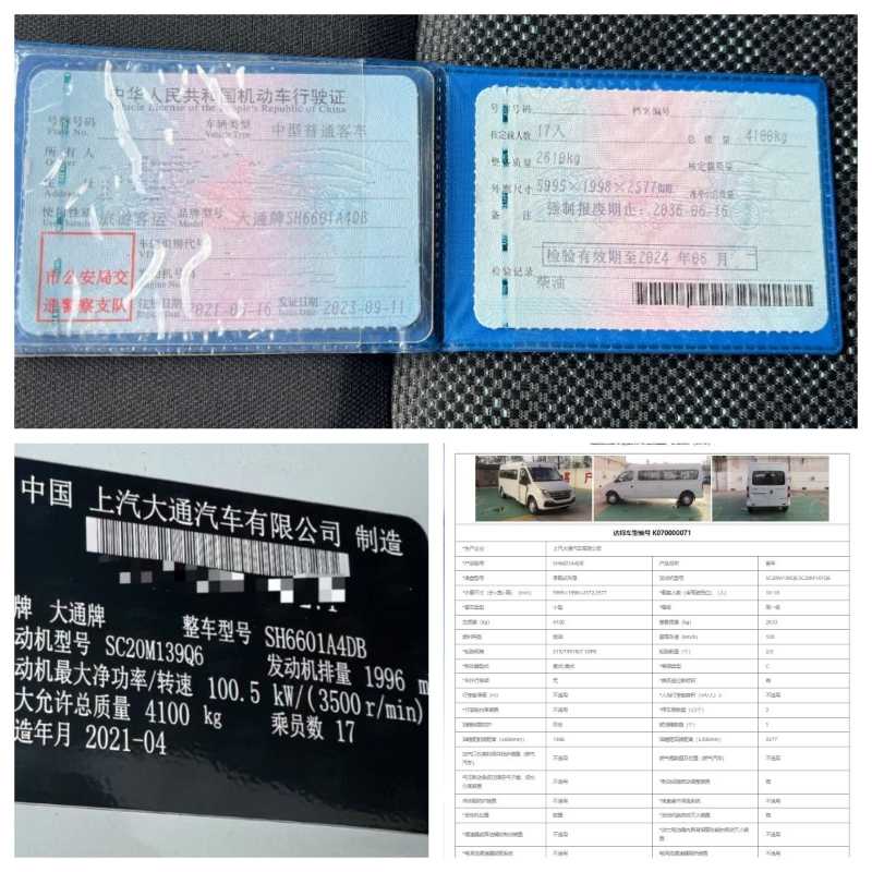 2021年7月上牌大通6601, 冷暖空调 多功能方向盘 ,6个前进档,SC20M139Q6发动机2.0排量,中型高级旅游客运营运证,后备仓可放行李箱,可提营运,