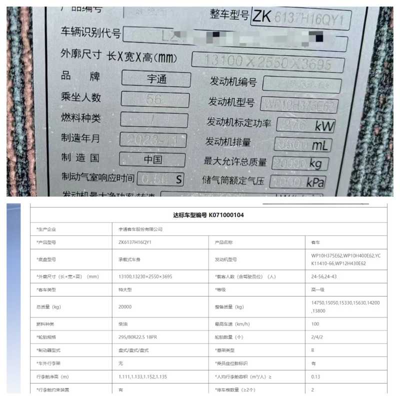 国六有公告东北配56座后吊轮宇通6137,2024年1月上牌,气囊车,潍柴375发动机,缓速器,通仓,木纹地板,锅炉暖风,双层玻璃,双档齐全,有兴趣的来聊:本公司接受客车置换(国三国四国五,非营运,旅游客运,公路客运,公交客运都可以)。我们有着丰富的外迁内地城市经验。也可做正规出口手续。我们在广东省珠三角区域(深圳、广州、珠海、佛山、东莞、惠州)从事二手车数十年,全部是薄利多销的价格出售,不管是单台还是批量•均享受最诚信的合作态度。也可以根据您需要的指定车型来优选匹配,柴油.油电混合、新能源纯电动均可在珠三角区域看到现车,各种品牌都有,油车,新能源电车,油电混合,天然气客车等,可安排师傅代驾送车,或者物流配送发往全国。我们的宗旨:不但销售的车型丰富多元化,服务更是全方位:可视频看车定车,可代驾送车。另外本公司常年收购2座-55座客车,中巴、大巴都可以操作。
