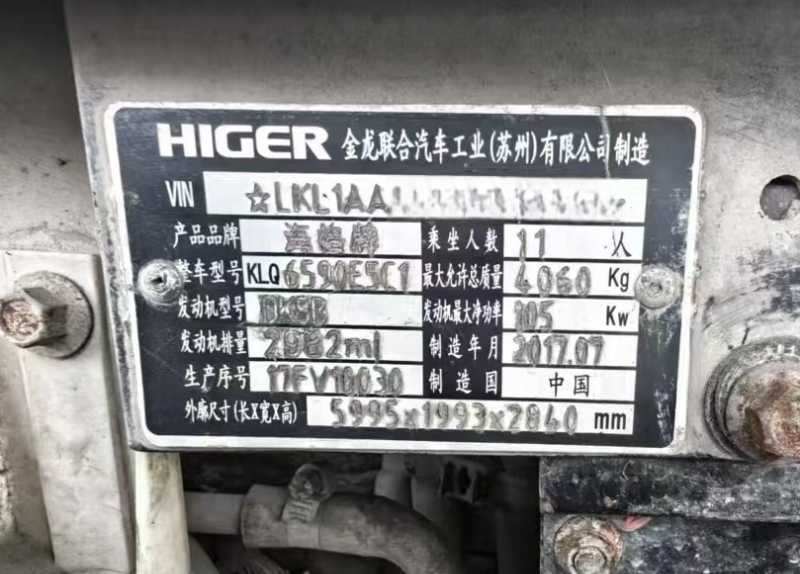 2017年上牌5.99米11座海格3.0客车