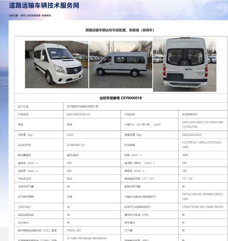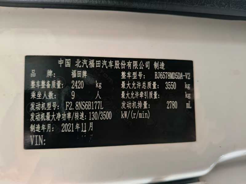 国六9座蓝牌福田图雅诺6578型营运车