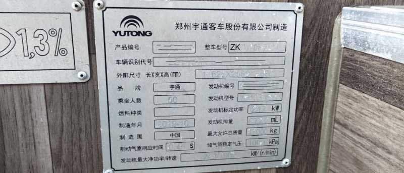 | 客车品牌 | 宇通客车 | 上牌时间 | 2019-11-12 |