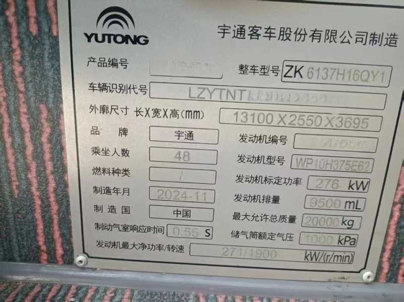 | 客车品牌 | 宇通客车 | 上牌时间 | 2024-12-19 |