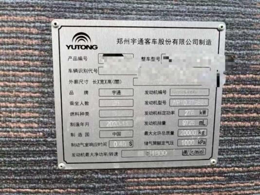 | 客车品牌 | 宇通客车 | 上牌时间 | 2021-01-14 |