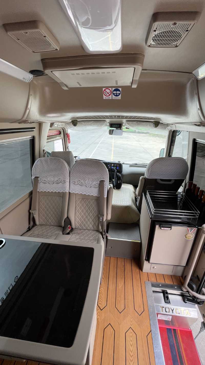 多台有公告4.0排量19座营运版考斯特,2023年10月上牌,旅游客运性质,有道路运输证,USB接口,伞架,秘书台,单边行李架,公里数少,中型中级公告,