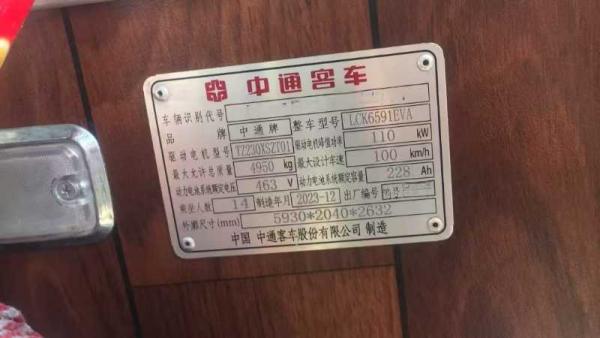 有公告准新14座中通新能源营运电车 2024年1月上牌中通6591,皮质座椅,木纹地板,B照可开,小型高一级公告。宁德时代电池,106度,公路客运性质,可提营运,外观内饰成色好,喜欢的来: 本公司接受客车置换(国三国四国五,非营运,旅游客运,公路客运,公交客运都可以)。我们有着丰富的外迁内地城市经验。也可做正规出口手续。我们在广东省珠三角区域(深圳、广州、珠海、佛山、东莞、惠州)从事二手车数十年,全部是薄利多销的价格出售,不管是单台还是批量•均享受最诚信的合作态度。也可以根据您需要的指定车型来优选匹配,柴油.油电混合、新能源纯电动均可在珠三角区域看到现车,各种品牌都有,油车,新能源电车,油电混合,天然气客车等,可安排师傅代驾送车,或者物流配送发往全国。我们的宗旨:不但销售的车型丰富多元化,服务更是全方位:可视频看车定车,可代驾送车。另外本公司常年收购2座-55座客车,中巴、大巴都可以操作。 公司地址:1、深圳市南山区西丽街道曙光社区云家供应链有限公司宿舍101车友汇鑫汽车贸易有限公司 2、深圳罗湖区宝岗路1号淘车吧