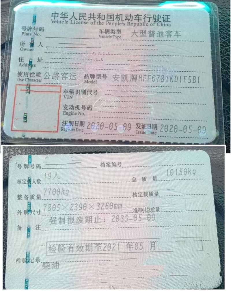 | 客车品牌 | 安凯客车 | 上牌时间 | 2020-05-19 |