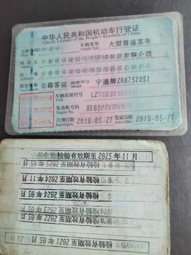 | 客车品牌 | 宇通客车 | 上牌时间 | 2019-05-21 |