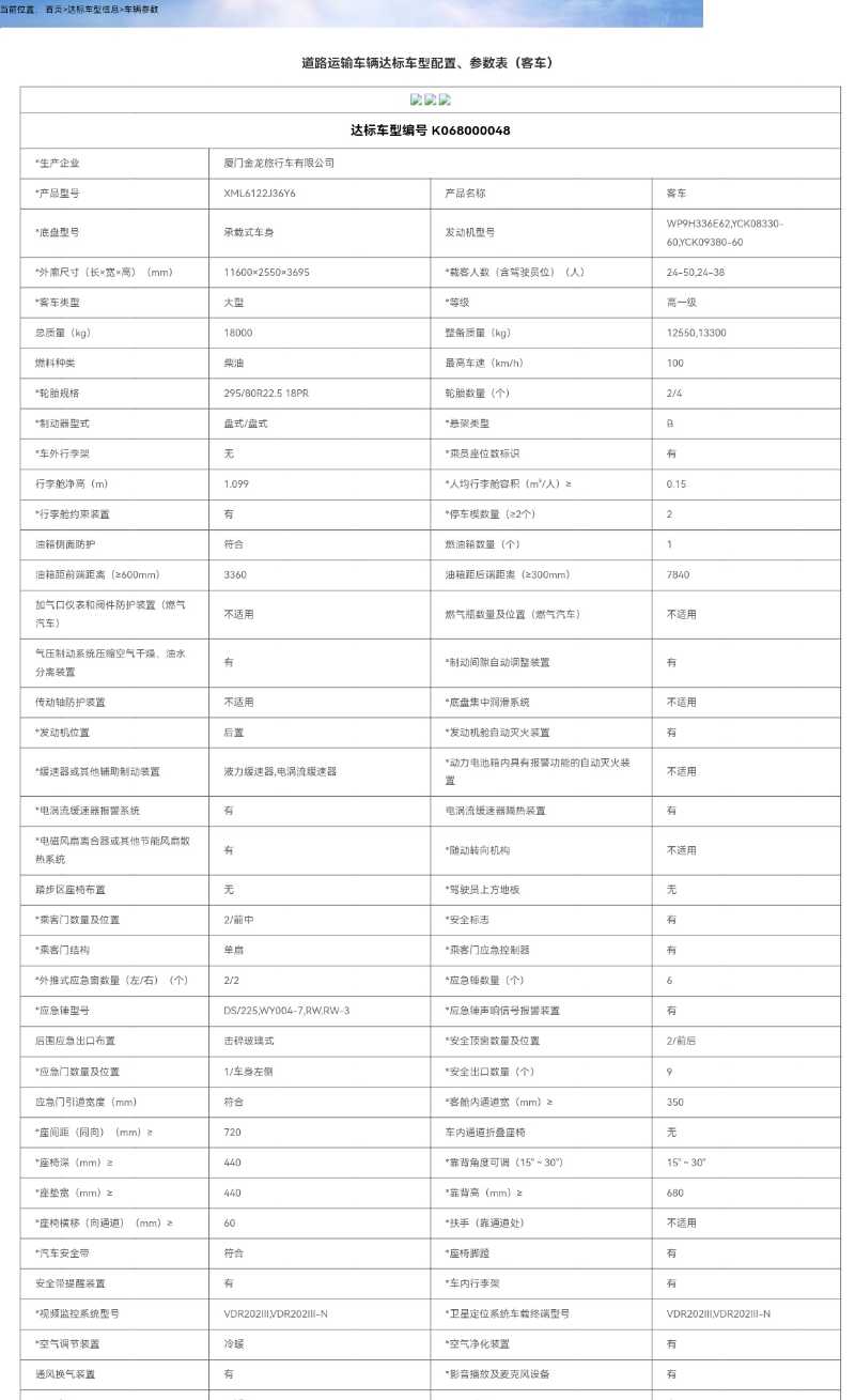 2023年5月上牌同款两台国六有公告50座金龙6122旅游车