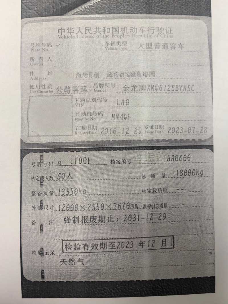 | 客车品牌 | 金龙客车 | 上牌时间 | 2016-12-30 |