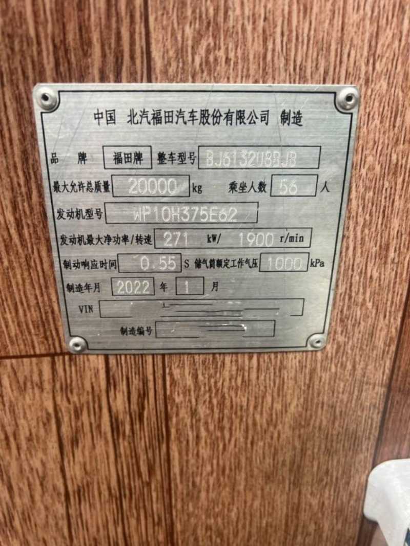 | 客车品牌 | 福田风景 | 上牌时间 | 2022-01-11 |
