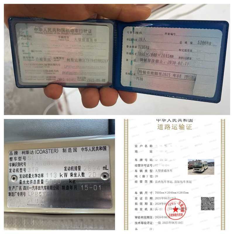 20座汽油营运版考斯特,2015年2月上牌 , 3TR 发动机, 2.7排量,折叠门,推拉窗,有道路运输证,单边行李架,公路客运可提营运档案,有兴趣的来聊: 本公司接受客车置换(国三国四国五,非营运,旅游客运,公路客运,公交客运都可以)。我们有着丰富的外迁内地城市经验。也可做正规出口手续。我们在广东省珠三角区域(深圳、广州、珠海、佛山、东莞、惠州)从事二手车数十年,全部是薄利多销的价格出售,不管是单台还是批量•均享受最诚信的合作态度。也可以根据您需要的指定车型来优选匹配,柴油.油电混合、新能源纯电动均可在珠三角区域看到现车,各种品牌都有,油车,新能源电车,油电混合,天然气客车等,可安排师傅代驾送车,或者物流配送发往全国。我们的宗旨:不但销售的车型丰富多元化,服务更是全方位:可视频看车定车,可代驾送车。另外本公司常年收购2座-55座客车,中巴、大巴都可以操作。 公司地址:1、深圳市南山区西丽街道曙光社区云家供应链有限公司宿舍101车友汇鑫汽车贸易有限公司 2、深圳罗湖区宝岗路1号淘车吧