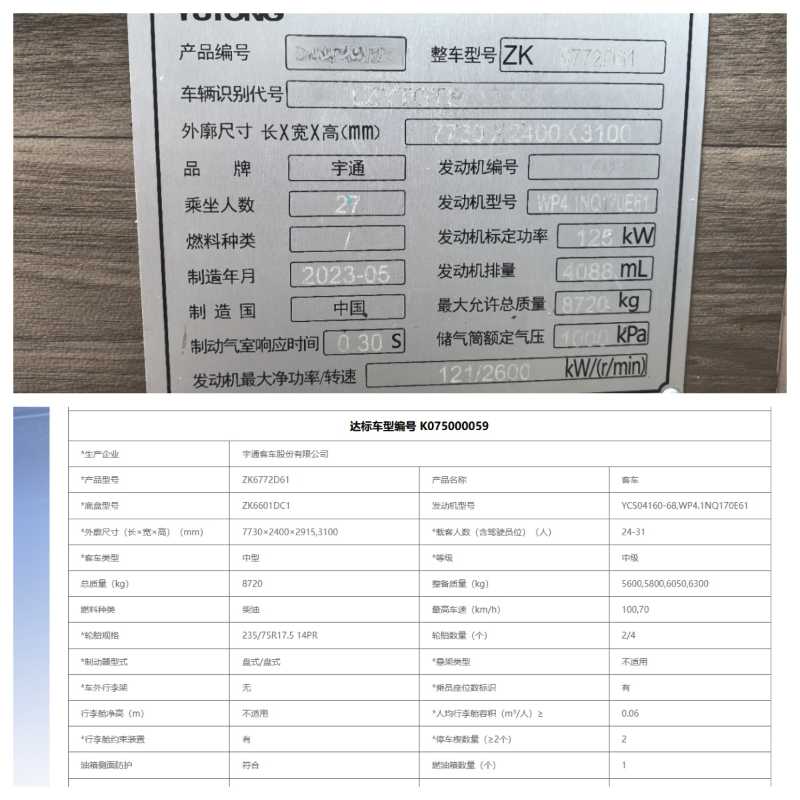 国六有公告27座宇通营运车,2023年上牌宇通6772 ,潍柴170发动机,钢板,有缓速器,全车原版原漆,安全行驶16万公里,有营运公告, 正规营运档案,转寄通知单,公路客运性质,有兴趣的来聊: 本公司接受客车置换(国三国四国五,非营运,旅游客运,公路客运,公交客运都可以)。我们有着丰富的外迁内地城市经验。也可做正规出口手续。我们在广东省珠三角区域(深圳、广州、珠海、佛山、东莞、惠州)从事二手车数十年,全部是薄利多销的价格出售,不管是单台还是批量•均享受最诚信的合作态度。也可以根据您需要的指定车型来优选匹配,柴油.油电混合、新能源纯电动均可在珠三角区域看到现车,各种品牌都有,油车,新能源电车,油电混合,天然气客车等,可安排师傅代驾送车,或者物流配送发往全国。我们的宗旨:不但销售的车型丰富多元化,服务更是全方位:可视频看车定车,可代驾送车。另外本公司常年收购2座-55座客车,中巴、大巴都可以操作。 公司地址:1、深圳市南山区西丽街道曙光社区云家供应链有限公司宿舍101车友汇鑫汽车贸易有限公司 2、深圳罗湖区宝岗路1号淘车吧