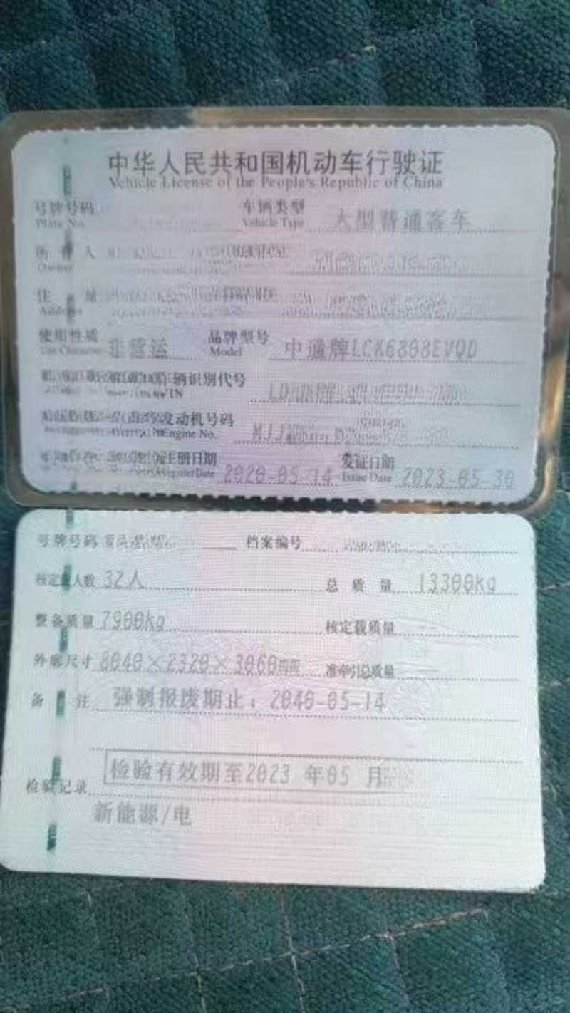 | 客车品牌 | 中通客车 | 上牌时间 | 2020-05-19 |