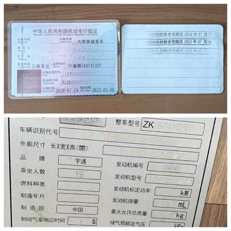| 客车品牌 | 宇通客车 | 上牌时间 | 2020-07-22 |