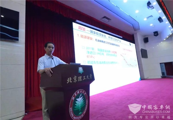 中国工程院院士北京理工大学孙逢春教授在培训会上详细解读我国新能源汽车的发展战略。他简要提及我国新能源汽车发展战略提出的背景及相关政策,分析了目前我国新能源汽车产业现状。