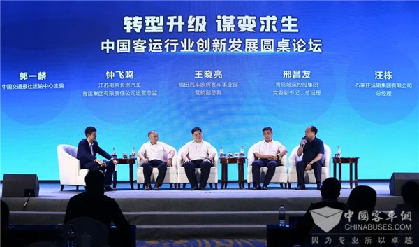 在圆桌对话环节,山东青岛城运控股集团总经理邢昌友、江苏南京长途汽车客运集团运营总监钟飞鸣、河北石家庄运输集团总经理汪栋、福田欧辉客车营销副总裁王晓亮等,就客运企业如何抓住用户需求,用好政策红利,统筹整合资源等深入交流。