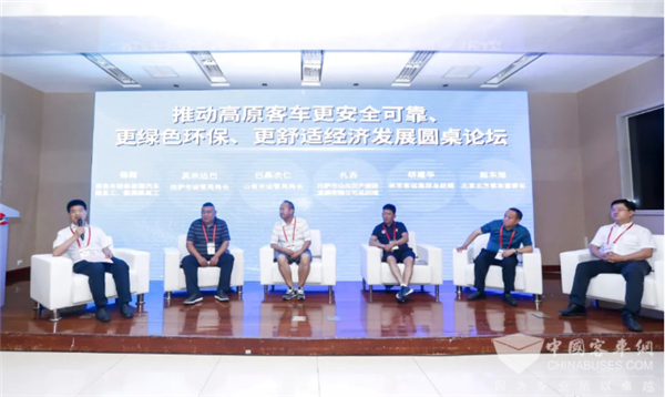 在圆桌论坛环节,招商局检测研究院新能源汽车专业副总工杨超,以及拉萨市运管局局长其米边巴、山南市运管局局长巴桑次仁、拉萨市公共交产旅游发展有限公司总经理扎西、林芝客运公司总经理胡建华、北京北方客车董事长赵东旭共同登台,以“推动高原客车更安全可靠、更绿色环保、更舒适经济发展”为主题展开了积极讨论。