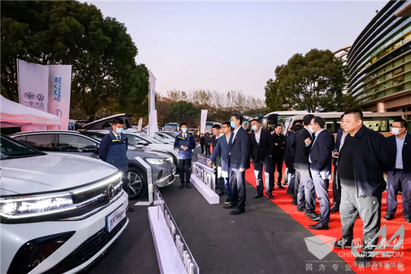 开幕仪式结束后,与会代表参观了旅游出行新技术、新产品展览展示。宇通客车、中通客车、金旅客车、海格客车、九龙汽车等商用车品牌悉数亮相,上汽通用、一汽大众、重庆长安、一汽奔腾、一汽红旗、一汽丰田、上汽大通、小鹏汽车、广汽传祺等乘用车品牌全面出击,玉柴机器等汽车零配件品牌重磅参展。此外,微宿、帝盛房车、瑞莱克斯、阿江房车等房车与露营装备品牌也限时集结。数十家品牌带来百余款产品同台竞技,上演了一场百花齐放的旅游出行产品盛宴。