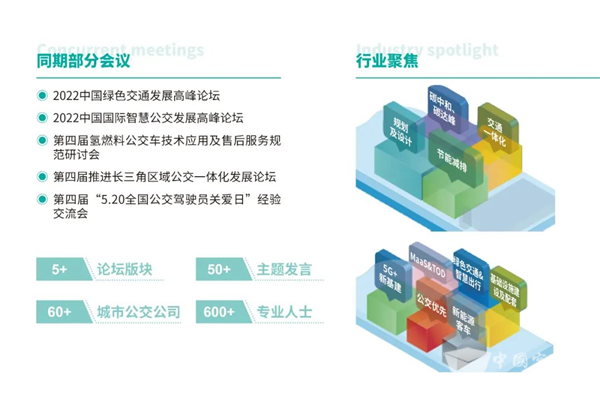 5场行业高峰论坛,5大模块专属展区,40000多平方展出面积,60+城市地区公交公司,300+参展企业,50+业界大咖分享交流,35000多位现场参观者。