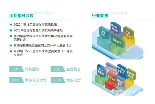 为加快推进便捷顺畅、经济高效、安全可靠、绿色集约、智能先进的现代化高质量公共交通综合立体交通网建设,推动枢纽经济融合互促发展,由城市交通网发起,中国土木工程学会城市公共交通分会主办的“2022中国绿色交通发展高峰论坛”将于2022年11月23-24日在南京举办,同期举办的还有“2022中国国际智慧公交发展高峰论坛、第四届氢燃料公交车技术应用及售后服务规则研讨会、第四届推进长三角区域公交一体化发展论坛、第四届“520全国公交驾驶员关爱日”经验交流会”主题论坛。