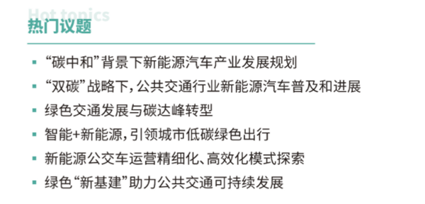 大会将围绕数“智”赋能 慧行致远这一主题,邀请政府主管部门、各大车企、公交公司、行业协会、科研院校等业界专家学者齐聚南京,聚焦减碳降耗、新能源、轻量化,构建绿色可持续的交通体系,通过多场主题峰会,就当下热门议题、技术瓶颈、前沿技术、政策法规等进行深度解读与探讨。