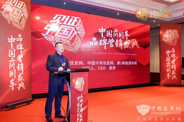 中国客车信息网、中国卡车信息网、第1新能源车网创始人、CEO吴奇表示:“希望这些获奖的‘商用车之最’能如星星之火,绽放燎原,为振奋人心的岁月留下真实而醒目的注脚。这也是我们连续三年坚持进行评选和颁奖的初心。”