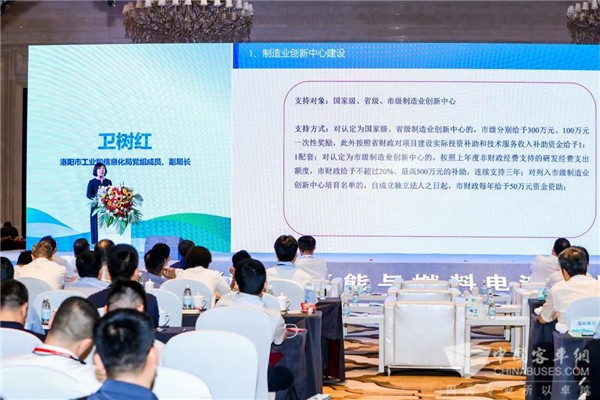 产业的快速发展离不开地方政策的扶持,洛阳市将氢能及燃料电池产业作为地方能源结构转型升级、打造经济新增长点的重要战略选择,从顶层设计、扶持措施、配套政策等方面持续加强对产业发展的引导和支持。洛阳市工业和信息化局党组成员、副局长卫树红在大会上对《洛阳市氢能及制造业产业政策》进行发布,产业政策包括了燃料电池汽车示范应用政策、氢能产业发展若干政策,支持有关单位工作。