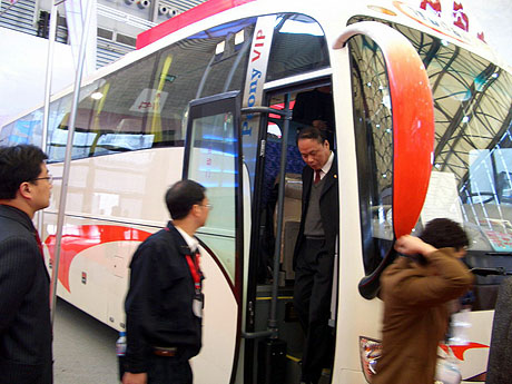 展会上,一位观展的外籍女士对这款车表现出了极大兴趣,她认为该款车型新颖流畅、充满动感,营造了愉快爽悦的观光心情,并表示要将该车型作为观光客车介绍至东南亚地区。