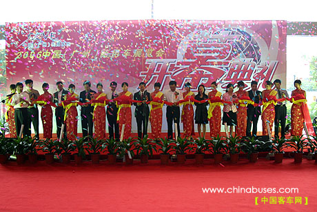 |    炎日悄逝,金秋送爽,时值中国客车业蓬勃发展之际,2006年中国(广州)商用车展览会于9月13日上午在广州花城会展中心隆重开幕。中国道路运输协会姚明德会长、中国城市公共交通协会朱滢秘书长、建设部科技委城市车辆专家委员会李世豪主任、中国道路运输协会秘书长王丽梅女士、广东省道路运输协会肖玉堂会长、厦门金龙旅行车有限公司销售公司张其建总经理以及广东省交通厅等相关部门领导出席了开幕仪式。